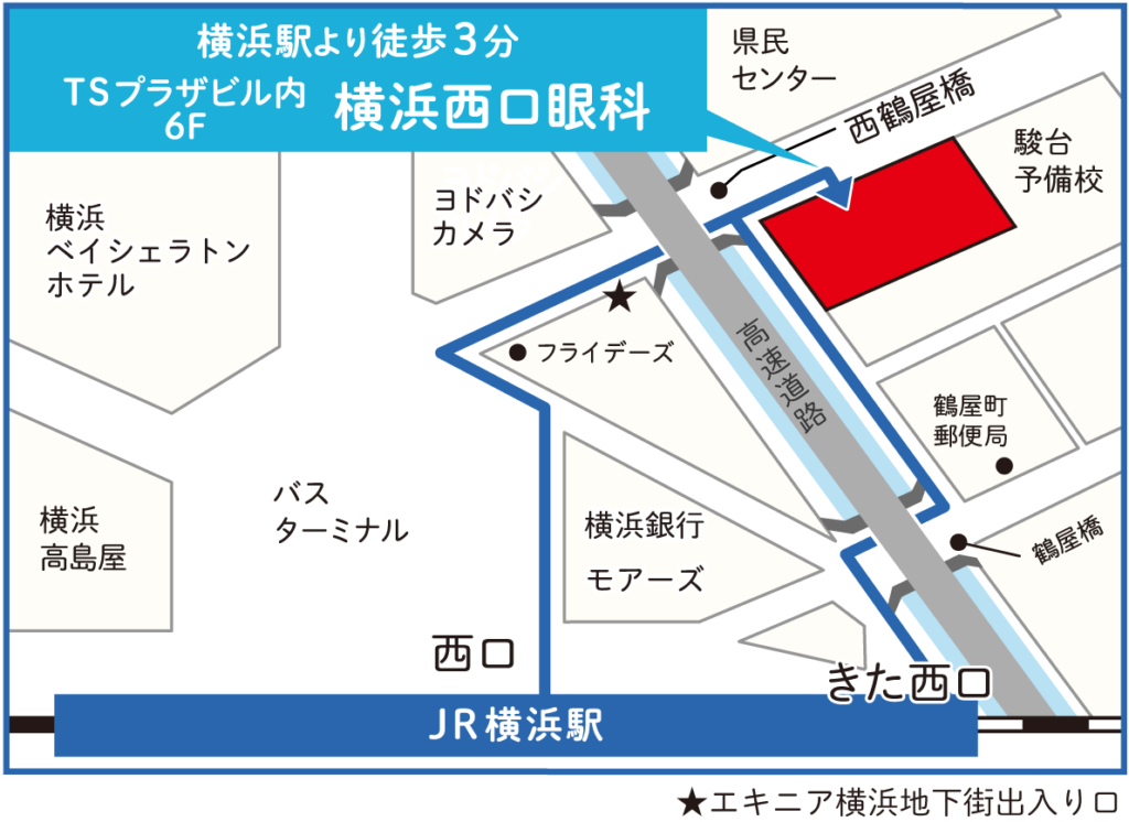 鶴屋橋渡りすぐ左折、信号手前右手にございます。